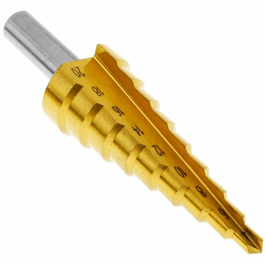 Mèche étagée pour perceuse et meuleuse. Kit de 3 pièces hélicoïdales. Comprend un sac pour ranger les bits. Idéal pour percer des trous avec une grande précision. spécifications Mèche étagée pour perceuse et meuleuse. Kit de 3 pièces hélicoïdales. Comprend un sac pour ranger les bits. Idéal pour percer des trous avec une grande précision. Comprend 3 pièces: (1) 4-12 mm 5 étapes, (2) 4-12 mm 9 étapes et (3) 4-20 mm 9 étapes. Métal à haute résistance, pour le perçage à grande vitesse dans la tôle fine, l’aluminium ou le bois. Ne convient pas pour l’acier inoxydable.
