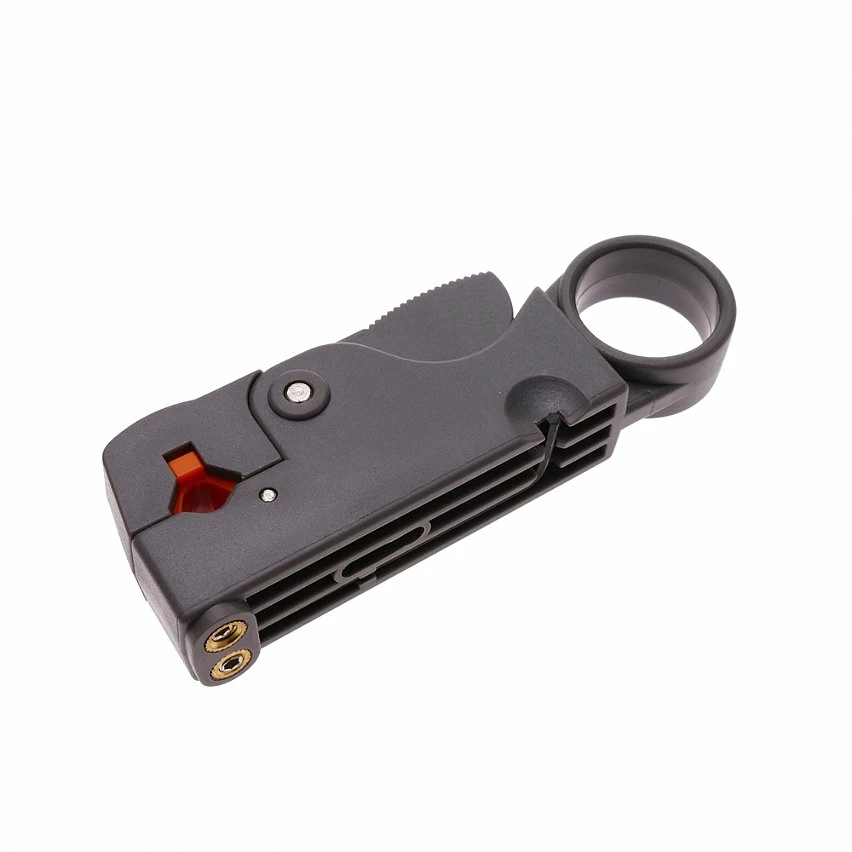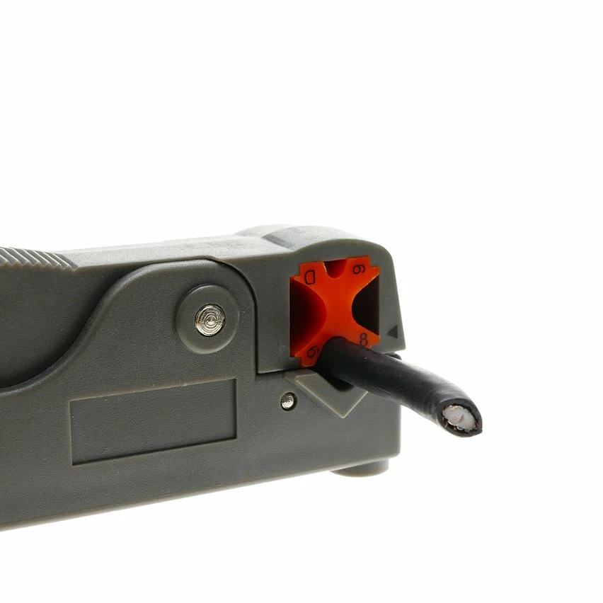 Outil de coupe de câble coaxial compatible avec l’épaisseur du modèle RG58U et RG59U. C’est un appareil qui coupe le câble avec un système de lame réglable. La coupe laisse le câble prêt pour le sertissage ultérieur du connecteur coaxial.