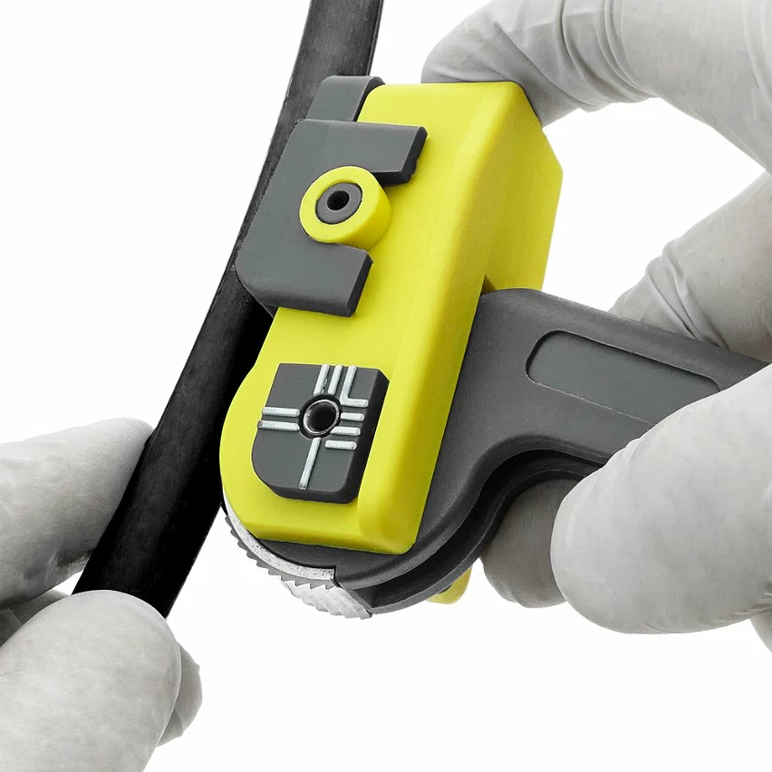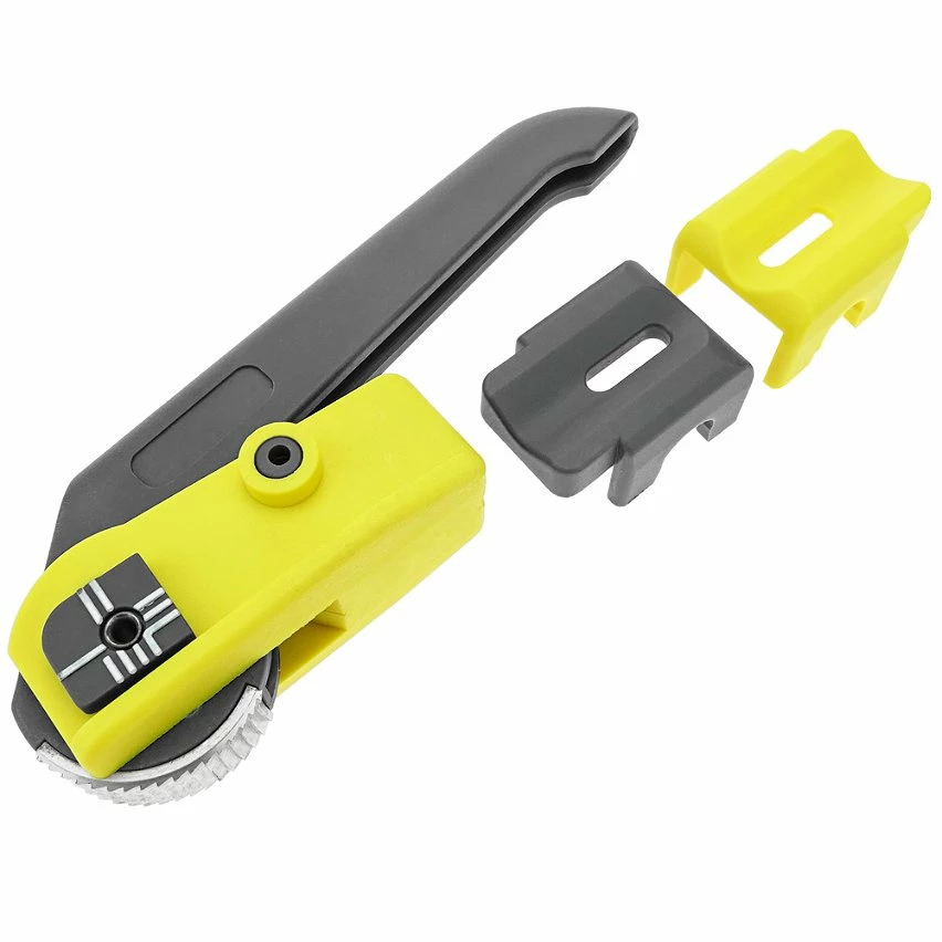 Outil de dénudage de gaine externe pour câbles électriques et câbles à fibres optiques. Permet d’ajuster le niveau de coupe pour pouvoir couper la gaine extérieure du câble en fonction de son diamètre. Outil indispensable pour préparer un câble électrique ou fibre optique avant de le connecter, sertir ou fusionner et gagner du temps de préparation dans les installations. spécifications Dénudeur de gaine externe pour câbles. Compatible pour dénuder les câbles à fibres optiques. Il permet d’ajuster la coupe en 4 niveaux avec deux accessoires. Diamètre jusqu’à 25 mm (adaptateur gris) ou diamètres plus grands (adaptateur jaune). Il permet de faire une coupe longitudinale sur le cache-câble. Utilisation simple et précise pour gagner du temps de configuration dans les installations.