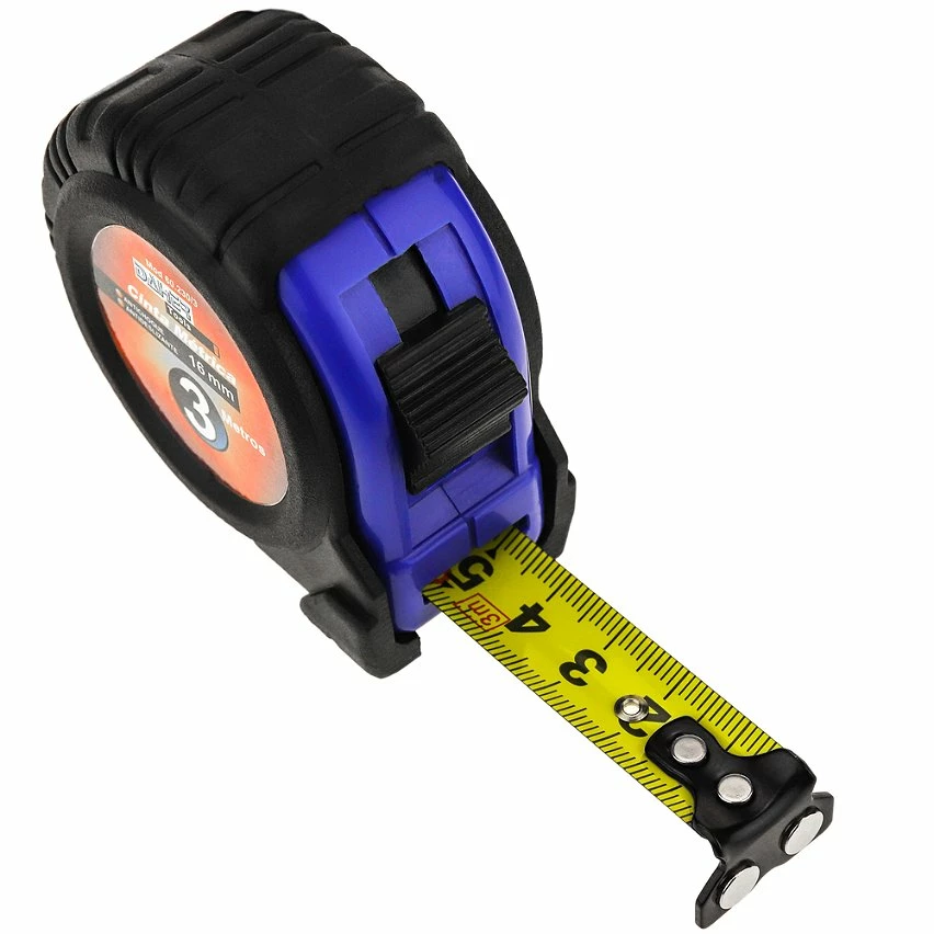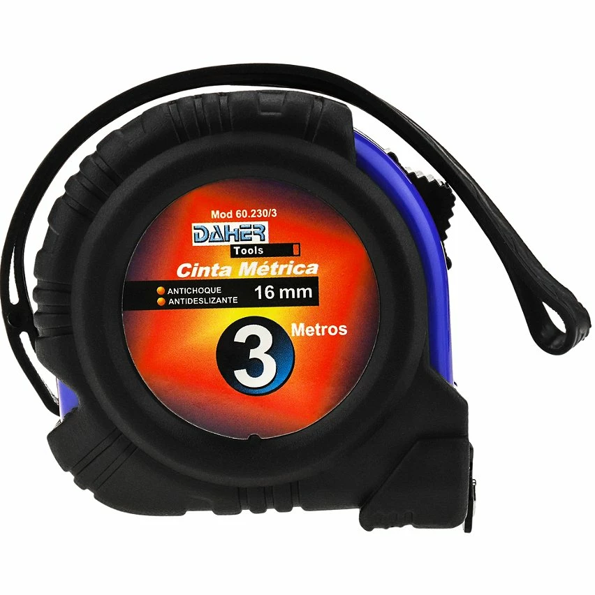 Ruban à mesurer en métal roulé. Système de rétraction automatique. Levier de verrouillage du ruban à mesurer. Ruban imprimé avec mesures en système métrique décimal (centimètres). Il a 2 aimants en haut du début du ruban pour la fixation sur des objets métalliques. Spécifications Ruban à mesurer en métal roulé. Longueur maximale: 3 mètres. Largeur du ruban: 16 mm.