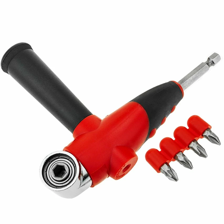 Deals 👏 BeMatik Tournevis manuel avec design angulaire. Adaptateur hexagonal 1/4 6,35 mm pour mandrin à angle droit et 4 conseils 👏