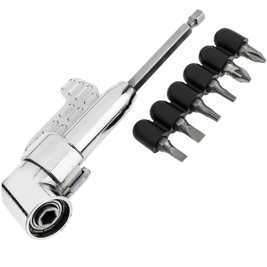 Best Sale 👏 BeMatik Tournevis manuel avec design angulaire. Adaptateur hexagonal 1/4 6,35 mm pour mandrin à angle droit et 6 conseils 😀