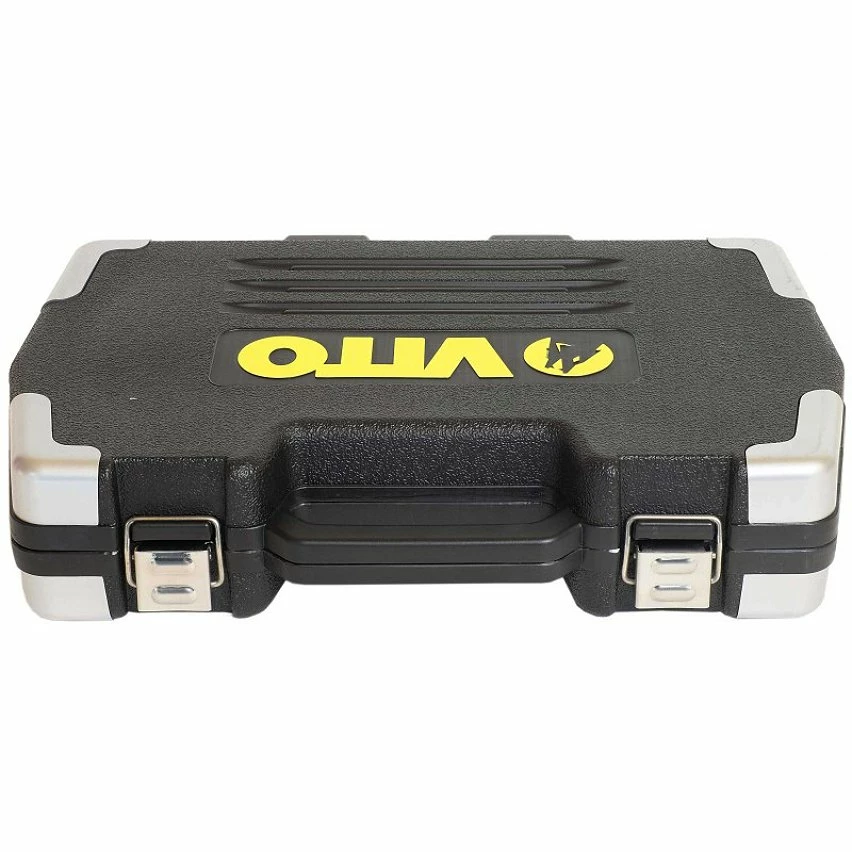 Ayez toujours vos outils à portée de main grâce à la boite à outils de 63 pièces VIMF63 VITO. Celle-ci est en plastique, elle est résistante aux chutes et aux chocs. Elle est conçue avec des fermoirs métalliques et des charnières résistants lors de l’utilisation et en cas de renversement du coffret, elle retient les outils . Elle s’ouvre facilement avec une main. Les outils ne peuvent pas rouiller ou se déformer à la pression car ils sont en chrome vanadium. La mallette dispose d’un design élégant noir et argent. De dimensions 39 x 27,5 x 8 cm (longueur x largeur x épaisseur), elle pèse 5 kg.