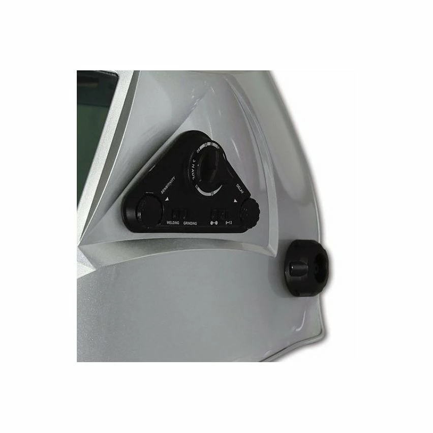 La cagoule de soudure STANLEY 4000E LCD automatique est équipée d’une molette de réglage sur l’extérieur de la cagoule pour la teinte de 4 et 9 à 13 sur l’échelle DIN, de la sensibilité et du délai d’obscurcissement.