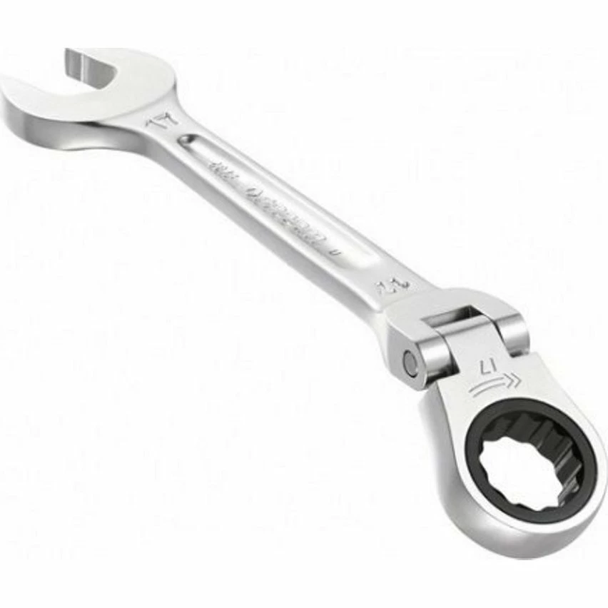 - Clé mixte à cliquet à tête articulée permettant d’atteindre les écrous difficiles d’accès