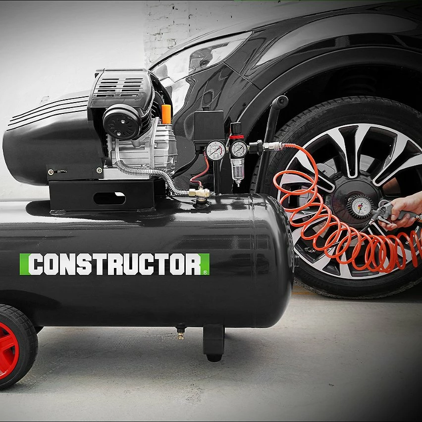 Avec sa cuve de 100L équipée d’une vanne de purge et son débit d’air de 250L/min, le compresseur CTAC8-100 de la marque Constructor vous permettra de gonfler, d’agrafer, de buriner, de souffler, d’utiliser un pistolet peinture…