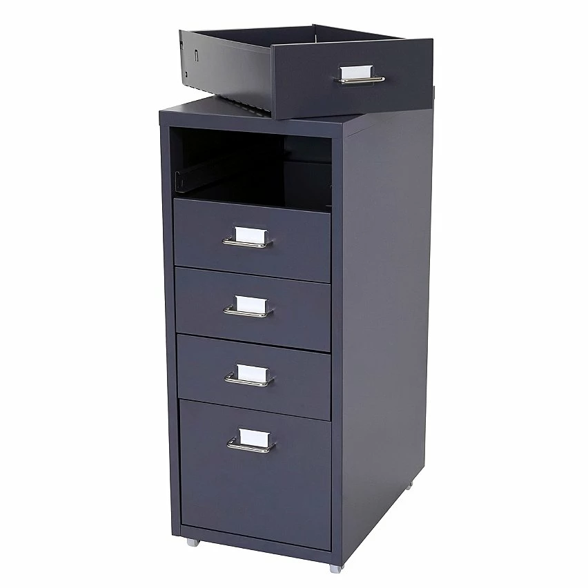 Caisson à tiroirs en acier, 69x28x41cm 5 tiroirs gris foncé