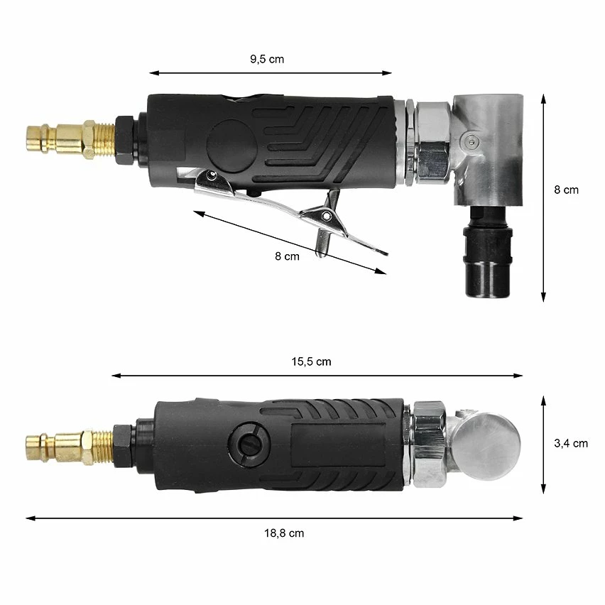 La nouvelle ponceuse à barre oblique d'ECD Germany offre une qualité solide à un bon prix. La ponceuse à bâton, légère et confortable, est livrée avec deux supports différents pour différents accessoires: 3 mm et 6 mm. Sa tête est inclinée à un angle de 90°, ce qui permet de travailler plus facilement "dans les coins". La meuleuse tient bien en main et est très flexible grâce aux différents supports et aux accessoires correspondants pour le montage de ces supports. Ces outils de montage sont inclus dans l'étendue de la livraison.