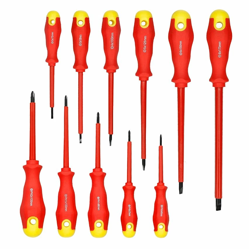 Jeu de tournevis isolés avec corps en chrome-vanadium, pointes durcies et trempées.