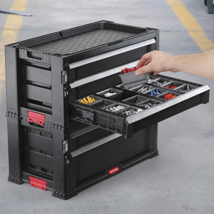 La combinaison d’une conception et d’une fonctionnalité rationalisées fait de ce coffre à outils modulaire de la marque Keter un excellent choix pour les travailleurs qualifiés et les amateurs.