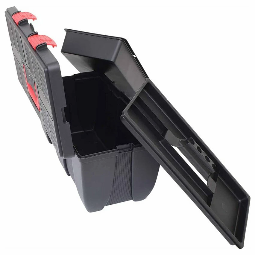 Cette boîte à outils comprend 2 plateaux amovibles pour les petites pièces, et a une capacité allant jusqu’à 10 kg.