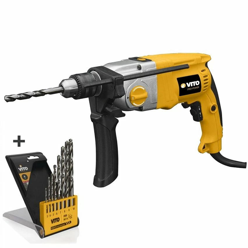 La Perceuse à percussion VITO VIBE1050 de 1050W est conçue pour percer dans les matériaux difficiles et durs du bâtiment grâce à sa fonction marteau haute performance.