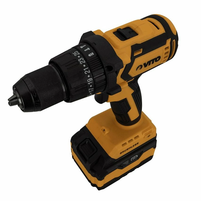 Compacte et légère la perceuse visseuse sans fil VITO 20V dispose d’un moteur brushless vous offrant ainsi fiabilité et robustesse.