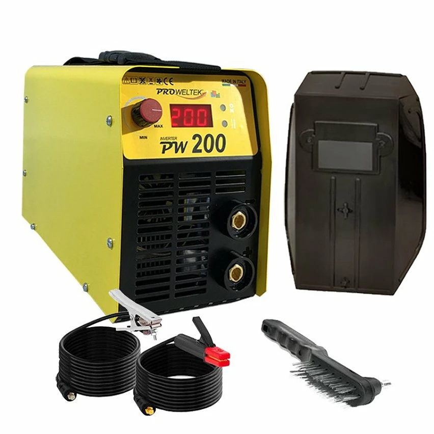 Le poste à souder PROWELTEK PW200 Inverter MMA Numérique permet de souder avec des électrodes de 1.6 à 5 mm de diamètre, jusqu’à une épaisseur de 12 mm. il soude l’acier, l’inox et la fonte.