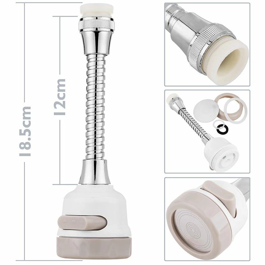 Accessoires de plomberie pour la gestion et l’économie d’eau. Utilisation dans les cuisines, les éviers et les buanderies, à la maison ou dans les bureaux et dans toute construction nécessitant une gestion responsable de l’eau. Éléments de robinetterie qui facilitent les tâches quotidiennes en matériaux résistants et durables. spécifications Diffuseur d’eau pour robinets avec régulateur triple fonction et tête rotative à 360º. Il dispose d’un sélecteur qui permet de sélectionner trois types d’écoulement d’eau, d’écoulement d’eau concentré, d’écoulement dispersé et d’écoulement de pluie. 30 à 70% d’économie d’eau par rapport à un robinet sans jet. Compatible avec les tarauds filetés femelles 22 mm ou mâles 24 mm. Flexo 12 cm de longueur. Fabriqué en plastique ultra résistant pour une utilisation quotidienne avec protection UV. Facile à installer et à utiliser, pas besoin de remplacer le robinet d’origine. Résistance: 60 ° à -6 ° de la température ambiante.