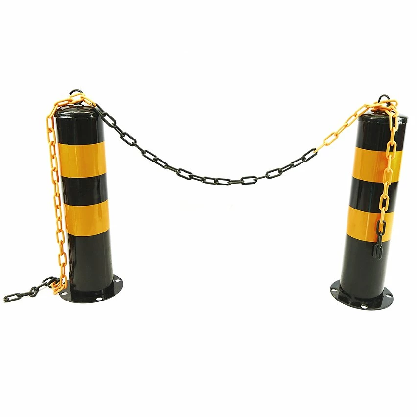 Borne ou borne métallique pour la protection et la signalisation des routes. Utilisations multiples: sécurité, signalisation routière, délimitation d’espaces, blocage d’accès, etc. Bornes de sécurité pour empêcher le vol lors de l’atterrissage. Des pylônes pour la signalisation routière, qui permettent de délimiter les espaces de circulation des véhicules. Spécifications Bornes ou bornes en métal de 3 mm d’épaisseur. Bollard modèle removible La borne peut être séparée de la base. Il a un mécanisme qui fonctionne avec une clé (une clé compatible est fournie). Poteau en métal métallisé peint en noir avec des rayures jaunes offrant une grande visibilité. Diamètre du corps central: 120 mm. Hauteur du corps central: 500 mm. Diamètre de la base: 164 mm. La base comporte 4 trous pour fixer la borne au sol à l?aide de visbagues non incluses). Diamètre des trous pour les vis: 15 mm. Anneau sur le dessus, pour fixer la chaîne, la corde, etc. Modèle de borne à fixer de manière permanente au sol.