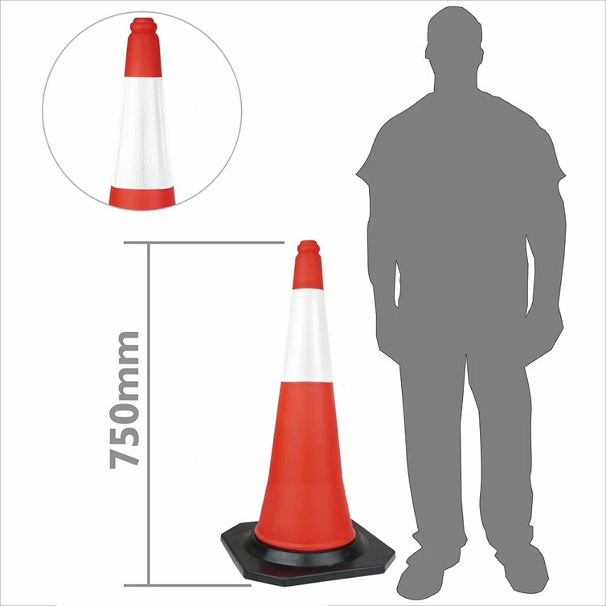 Cône de signalisation et de balisage, pour la délimitation des différents espaces. Idéal pour délimiter les routes, les rues, les espaces privés, les espaces industriels, etc. Base en caoutchouc solide, lourde et noire. Cône en plastique orange résistant, avec réflecteur blanc. Spécifications Hauteur totale du cône: 75 cm Mesures de base: 38,4 x 38,4 cm Hauteur du réflecteur blanc: 21,5 cm Poids de la base: 1,9 kg Poids total du cône: 2,4 kg