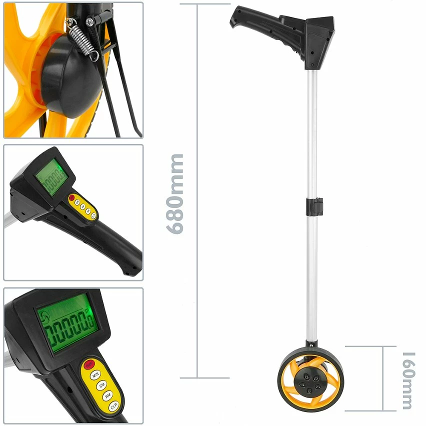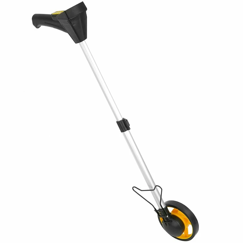 La roue de mesure de distance, également appelée odomètre, est utilisée pour mesurer la distance le long d’une surface. Un tour de roue mesure une certaine distance. Les roues de cet équipement topographique offrent un bon niveau de précision lorsqu’elles sont placées sur une surface lisse. Idéal pour mesurer des routes, des rues ou des terrains accidentés, grâce à l’adaptabilité de cet instrument. Remplacez le ruban à mesurer lorsque vous mesurez de longues distances. Spécifications La roue de mesure de distance, également appelée odomètre, est utilisée pour mesurer la distance le long d’une surface. Diamètre de roue 160 mm, avec revêtement en caoutchouc qui s’adapte à la plupart des surfaces. Chevalet permettant de maintenir le compteur en position verticale. Affichage à cinq chiffres pour le contrôle des compteurs (0 à 99999) et un chiffre pour le contrôle des centimètres (0 à 9). Il permet de fonctionner avec le système impérial britannique (pieds et pouces). Écran multifonction permettant d’afficher les mesures, les mémoires et doté de cinq boutons de commande (ON / OFF, m / ft, stocker, restaurer, réinitialiser). Barre extensible, longueur configurable de 40 à 68 cm. Poignée ergonomique en caoutchouc noir. Barre en aluminium légère et résistante. Comprend un sac de transport, avec une bandoulière. Fait de toile noire. Il fonctionne avec deux piles AAA 1,5 V (incluses).
