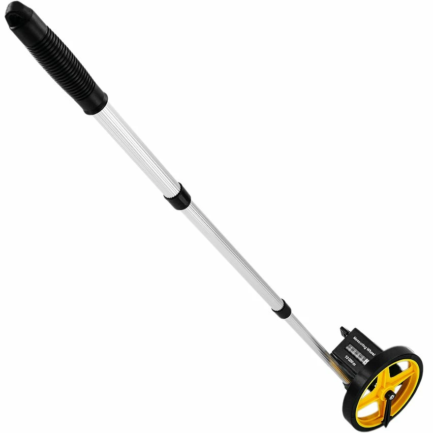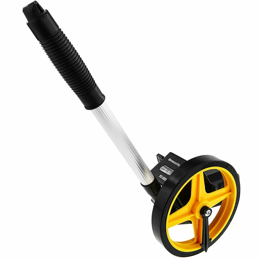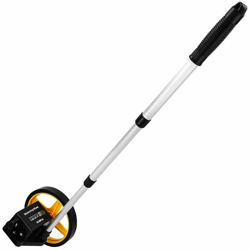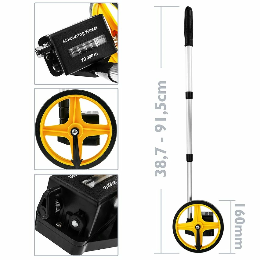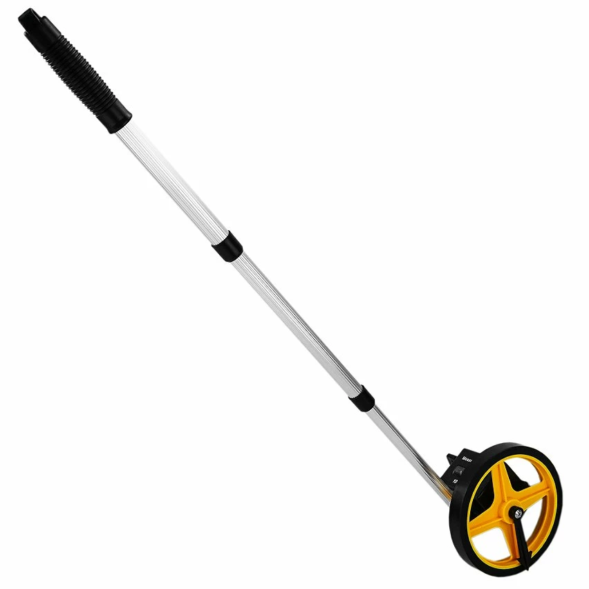 La roue de mesure de distance, également connue sous le nom d’odomètre, est utilisée pour mesurer la distance le long d’une surface. Un tour de roue mesure une certaine distance. Les roues de cet équipement topographique offrent un bon niveau de précision lorsqu’elles sont placées sur une surface lisse. Idéal pour mesurer les routes, les rues ou les terrains irréguliers, grâce à l’adaptabilité de cet instrument. Remplacez le ruban à mesurer lorsque vous mesurez de longues distances. Spécifications techniques La roue de mesure de distance, également connue sous le nom d’odomètre, est utilisée pour mesurer la distance le long d’une surface. Diamètre de roue 160 mm, avec revêtement en caoutchouc qui s’adapte à la plupart des surfaces. Flèche indicatrice de niveau. Affichage à quatre chiffres pour le contrôle des compteurs (0 à 9999) et un chiffre pour le contrôle des centimètres (0 à 9). Odomètre qui mesure la distance en mètres avec une décimale. Levier de réglage du compteur zéro (réinitialisation du compteur). Barre extensible qui vous permet de configurer sa longueur de 38,7 à 91,5 cm. Poignée ergonomique en caoutchouc noir. Barre en aluminium légère et résistante.