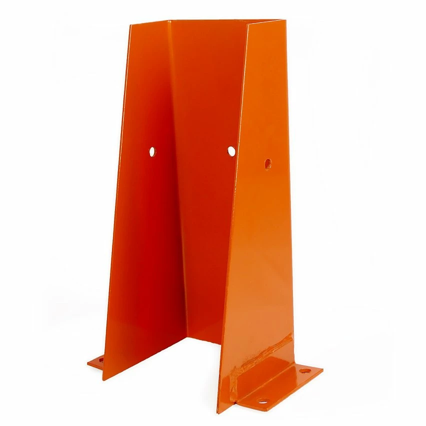 Protecteur d’étagères métalliques en forme de « U ». Protecteur métallique qui protège les colonnes des étagères, des chocs causés par les camions de transport, transpalettes, etc. Idéal pour être utilisé dans les étagères de boîtes (petites et moyennes charges) et les étagères de rangement des palettes (grandes charges). Taille du protecteur: 17 x 16 x 40 cm. Taille des pattes de fixation: 12 x 4 cm. Epaisseur: 4 mm Il a de perforations pour la fixation du protecteur au sol. Il a des perforations pour la fixation des barres de protection. Couleur orange. Compatible avec notre goujon métallique à vis, référence #SE39.