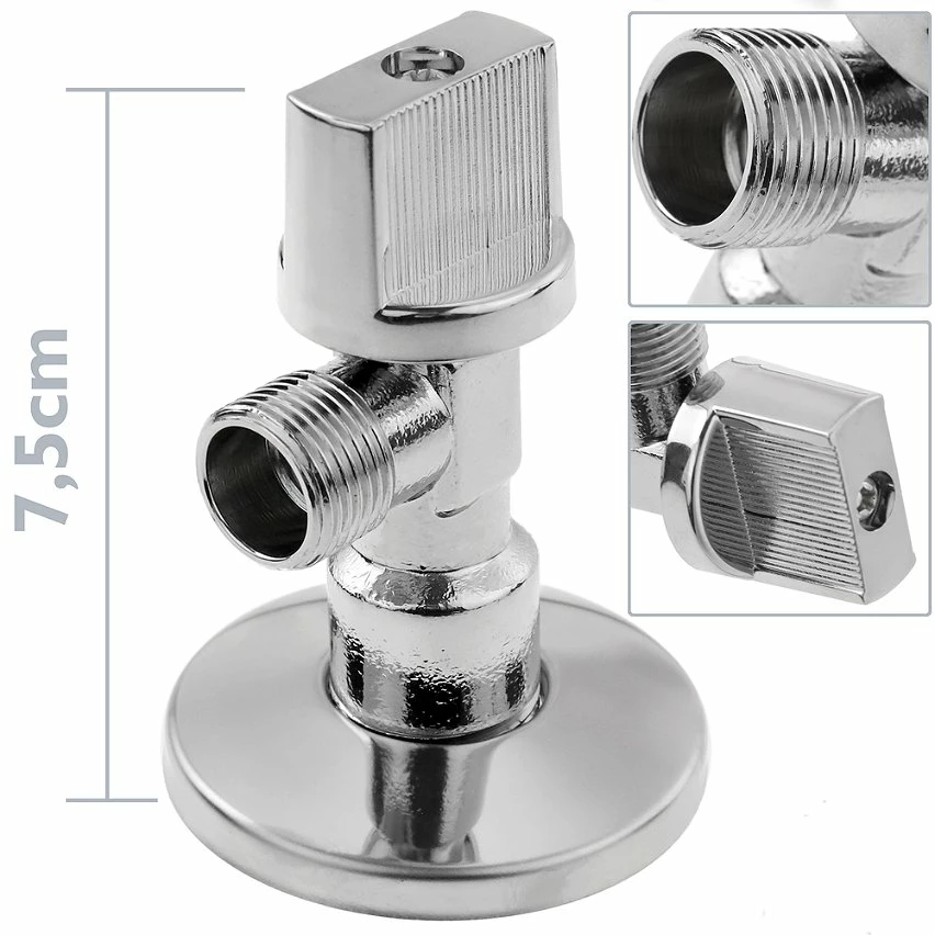 Accessoires de plomberie pour la conduction d’eau. Utilisation dans les cuisines, les éviers et les buanderies, à la maison ou dans les bureaux et dans toute construction qui nécessite la conduction et la canalisation de l’eau. Éléments pour robinets et drains pour éviers, éviers, éviers, bidets, WC, baignoires et receveurs de douche. Spécifications Robinet de réservoir carré 1/2 « -3/8 ». Matière: Téflon anti-calcaire. Filetage d’entrée: 1/2 « . Filetage de sortie: 3/8 ». Fermez la clé d’un quart de tour. Utilisé comme robinet d’arrêt d’eau ouvert / fermé. Particulièrement utilisé pour l’entrée de l’eau de la citerne WC.
