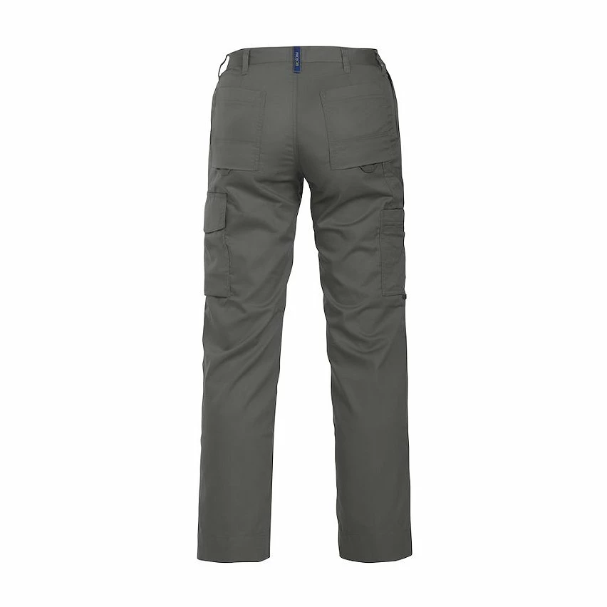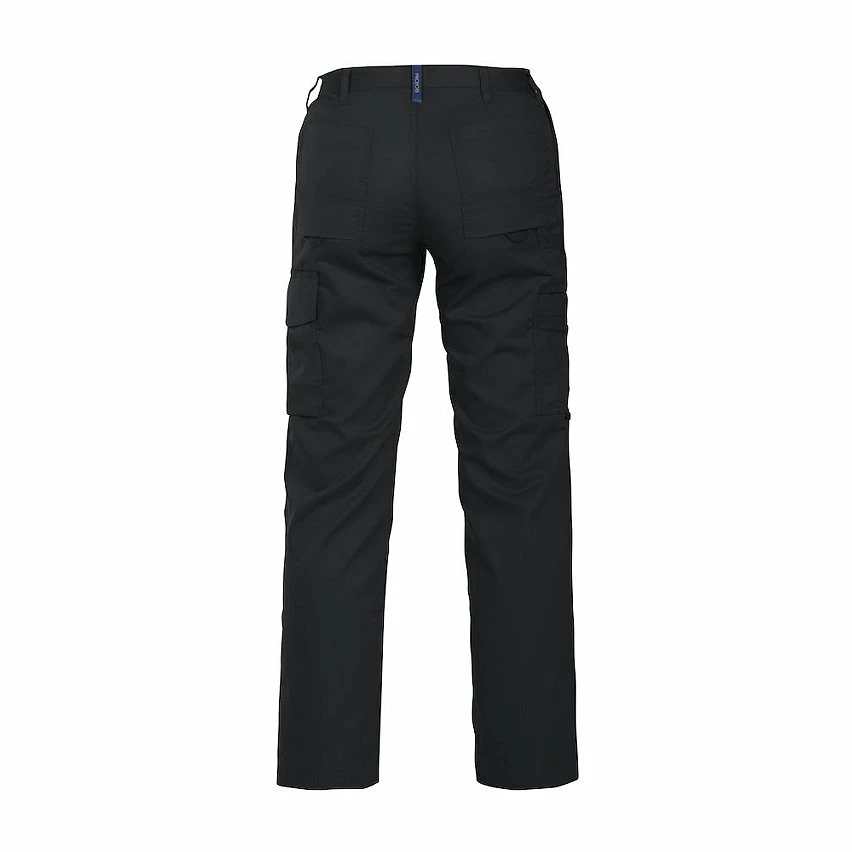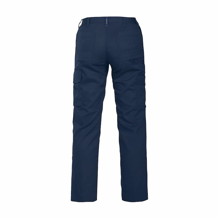 Pantalon polycoton coupe Femme – 245 g/m2 – Empiècement entrejambe pour + de confort et de résistance – Poches latérales – Pochette de sécurité avec fermeture éclair du coté droit Poches multi outil + nombreuses poches devant et derrière dont 1 pour téléphone à l’interieur – Anneau en D sur ceinture – Compartiment genouillères intérieurs – Certification Oekotex 100 – Lavage 60°
