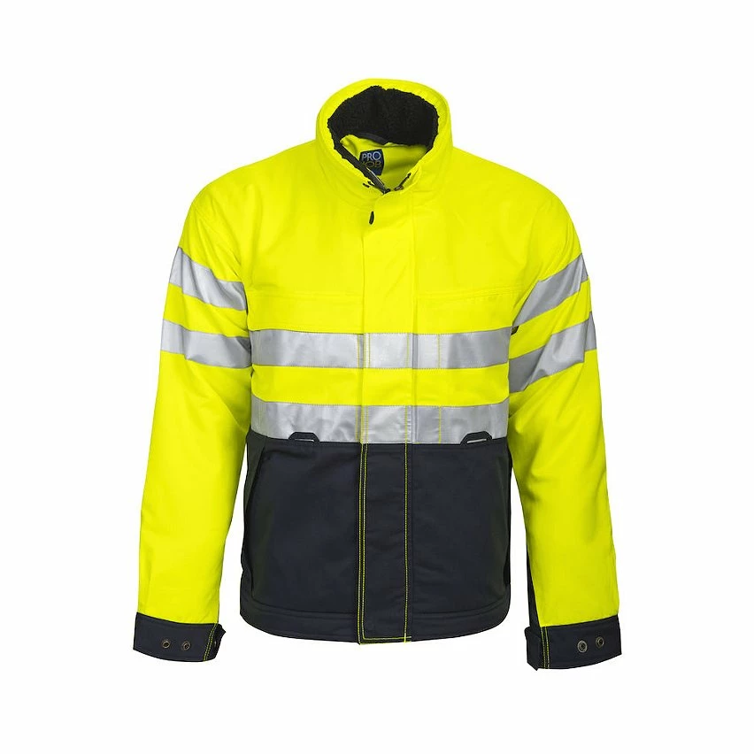 Blouson chaud et doublé Homme – Zip central YKK® sous rabat a/ boutons pression – 275 g/m2 – 2 poches poitrine sous rabat avec boucle pour système Inbag – Dos + long pour une meilleure protection des reins – 2 poches latérales zippées et profondes – Grandes poches intérieures – Poignets + tour de taille ajustables – Les renforts en polyamide donnent une protection supplémentaire contre l’usure et l’humidité – Doublure a/ ouverture pour faciliter la broderie et la sérigraphie – Col doublé polaire pour plus de confort – Bandes HV cousues EN ISO 20471 Classe 3 – Certification Oekotex 100 – Lavage 60°