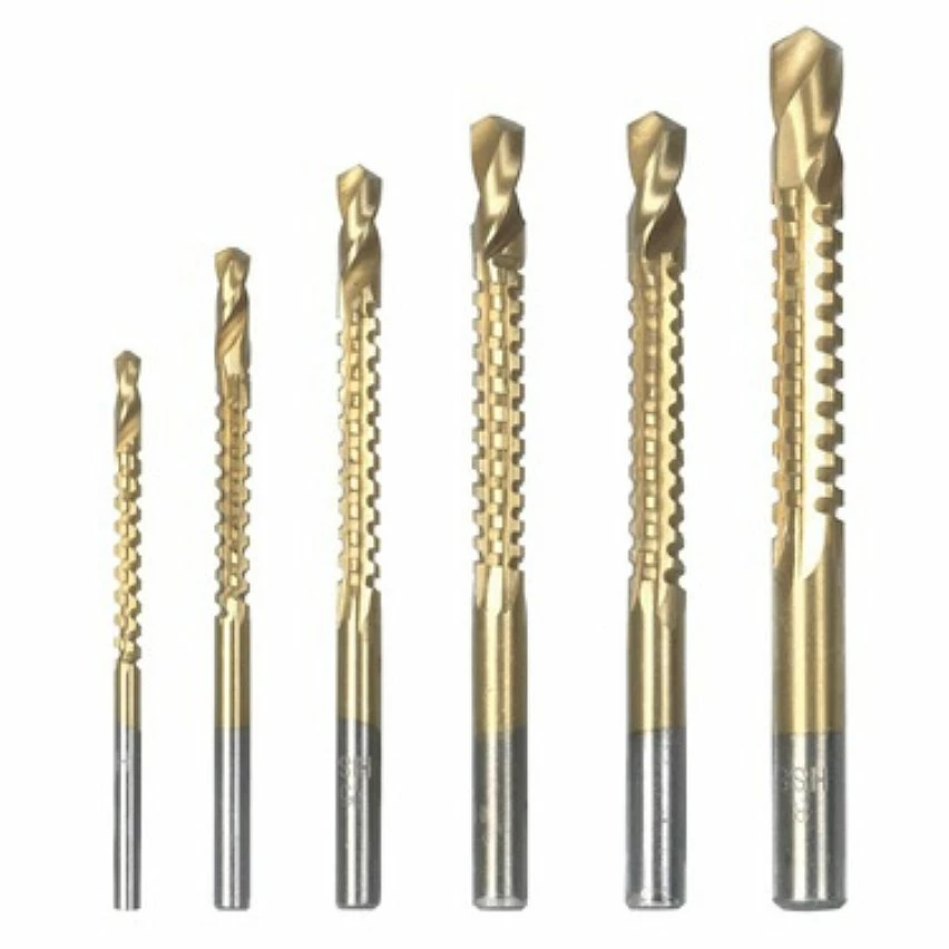 - Lot de 6 forets multifonction en acier HSS plaqués titane pour une résistance accrue