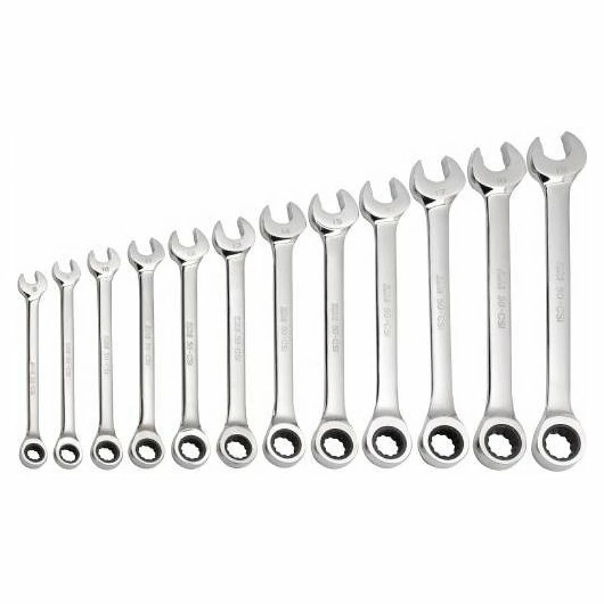 - Jeu de 12 clés mixtes à cliquet finition polie brillante