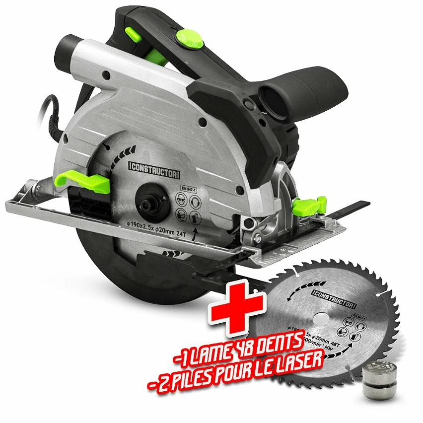 Buy 👏 Scie circulaire plongeante 1400W avec rail de guidage – Lame 190mm 24 dents – Constructor 😍