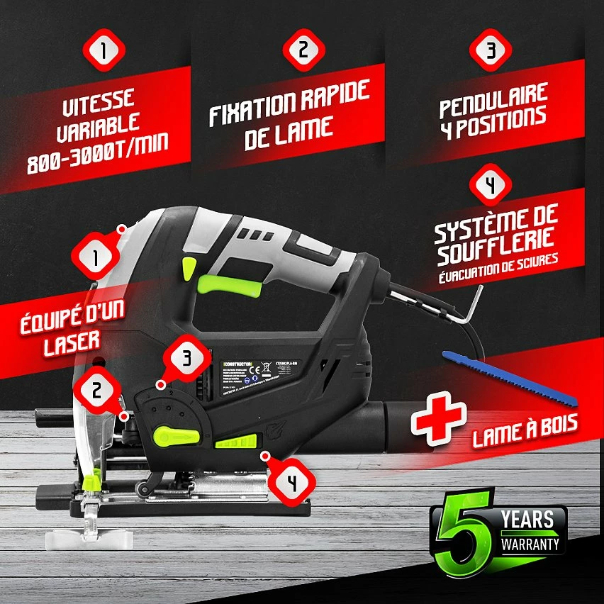 Coupon 🥰 Scie sauteuse pendulaire 800W – Laser – Coffret de rangement – Constructor ✨