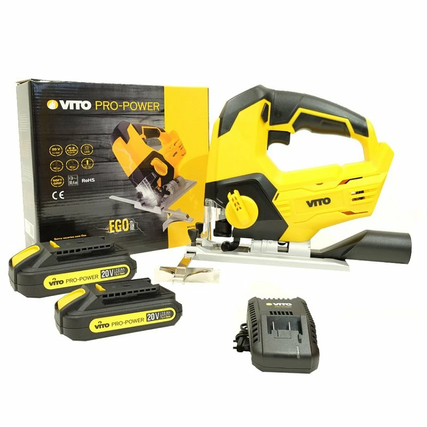 Scie sauteuse sans fil 20V VITO EGO 20 V Inclus : 2 batteries 4.0 Ah + un chargeur rapide. Support en Aluminium