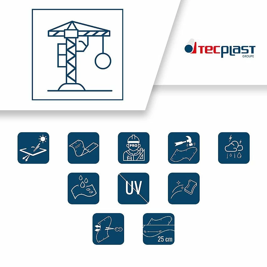 Cette bâche de protection PVC dont la durée de vie est supérieure à 10 ans n’est même pas pénalisée par son prix. Notre engagement : à qualité égale, vous trouvez une bâche transparente moins chère, nous vous remboursons la différence.Bâches Direct (Groupe Tecplast) a innové et a créé de toute pièce cette gamme de bâches professionnelles de fabrication Française.