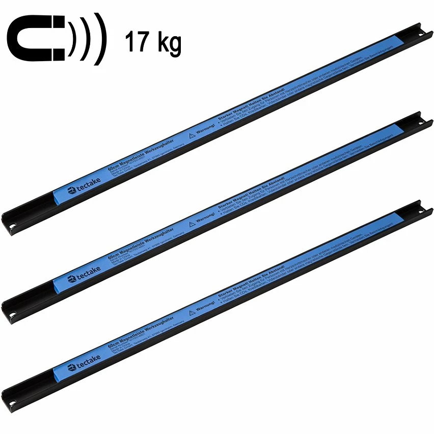 Vous aimez que vos outils soient toujours rangés et à portée de main ? Aucun souci avec la barre magnétique puissante de tectake. Marteaux, scies, pinces, niveaux à bulle et tournevis s’y fixent sans problème. Les longues recherches fastidieuses dans les tiroirs appartiennent désormais au passé. Ce petit paquet de puissance se visse au mur en toute simplicité et supporte aisément une charge de 20 fois son propre poids. Même les outils lourds ou les petits sachets de vis ne posent aucun souci au porte-outils magnétique. Parfait pour l’atelier ou l’usage domestique. Un coup d’œil, un geste et vous avez le bon outil entre vos mains, grâce à la barre magnétique fonctionnelle de tectake.