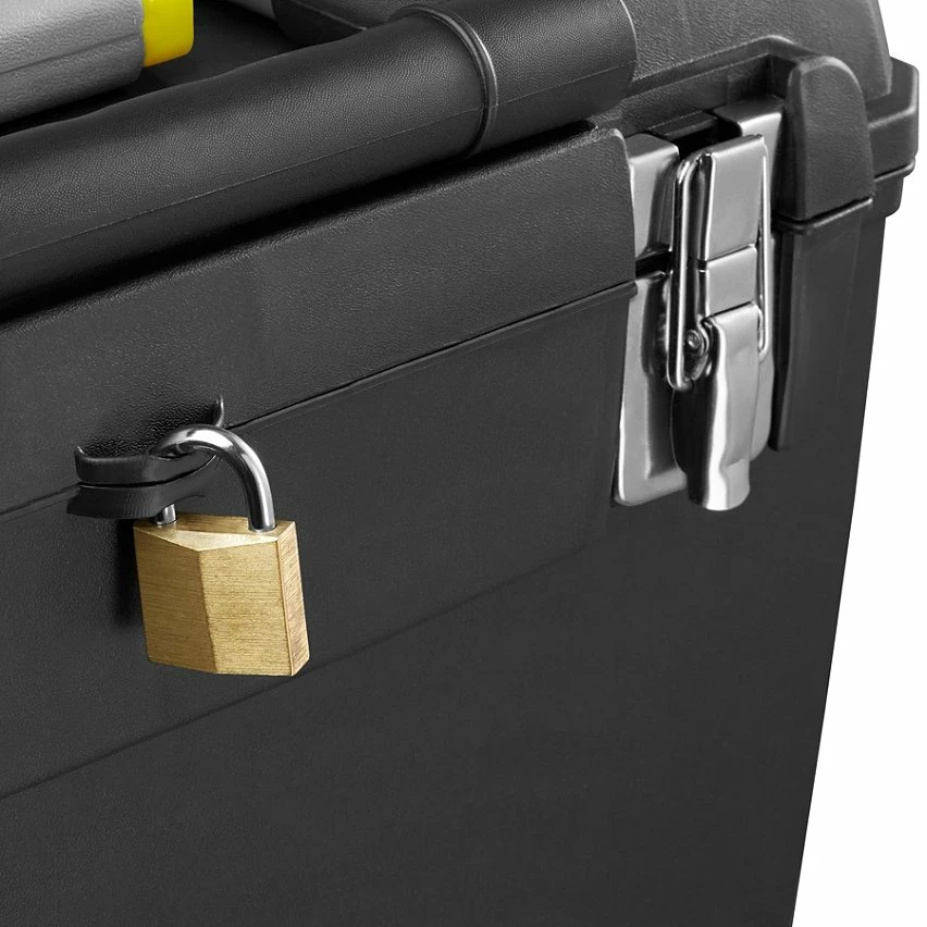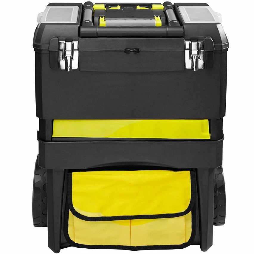 Notre chariot à outils fonctionnel tectake offre un grand espace de rangement et une excellente organisation sur deux niveaux. Les grandes roues et la poignée télescopique permettent de transporter facilement cette caisse à outils. La partie supérieure portative peut être détachée et utilisée seule. La partie inférieur quant à elle accueille le rangement d’outils plus volumineux. Ce chariot facile à entretenir est doté de coins arrondis ainsi que d’une possibilité de fixer un cadenas pour empêcher l’accès aux enfants et les accidents domestiques.