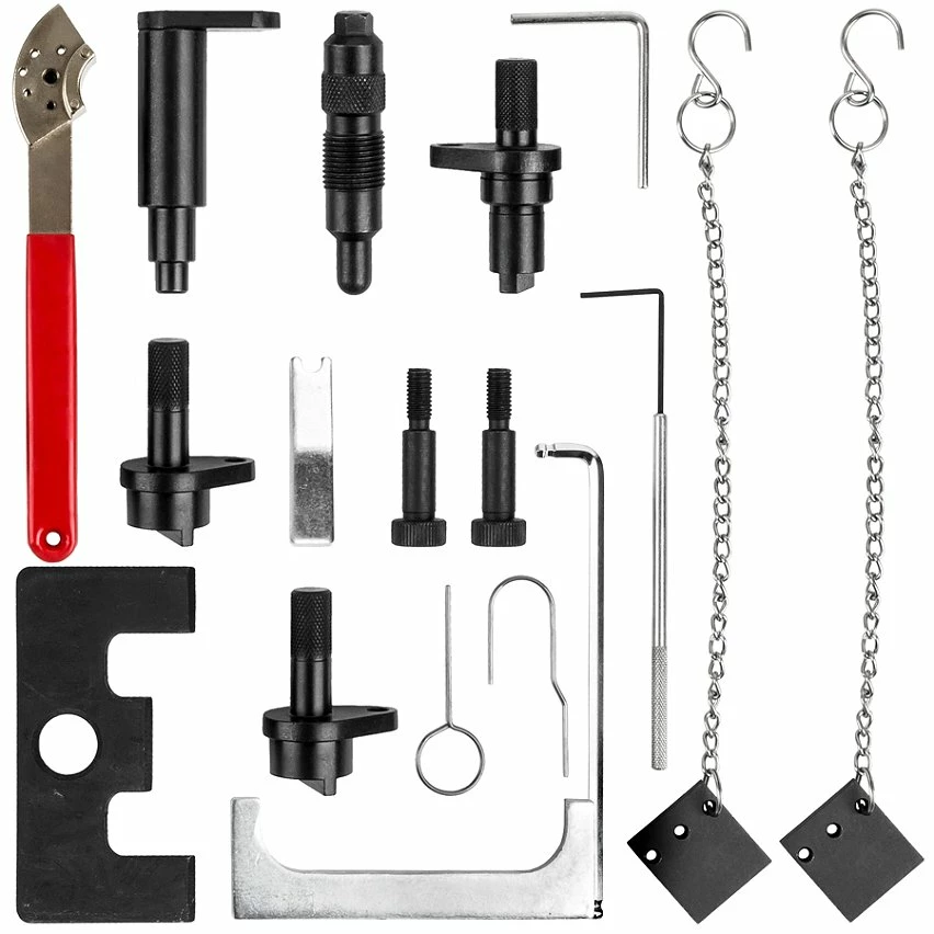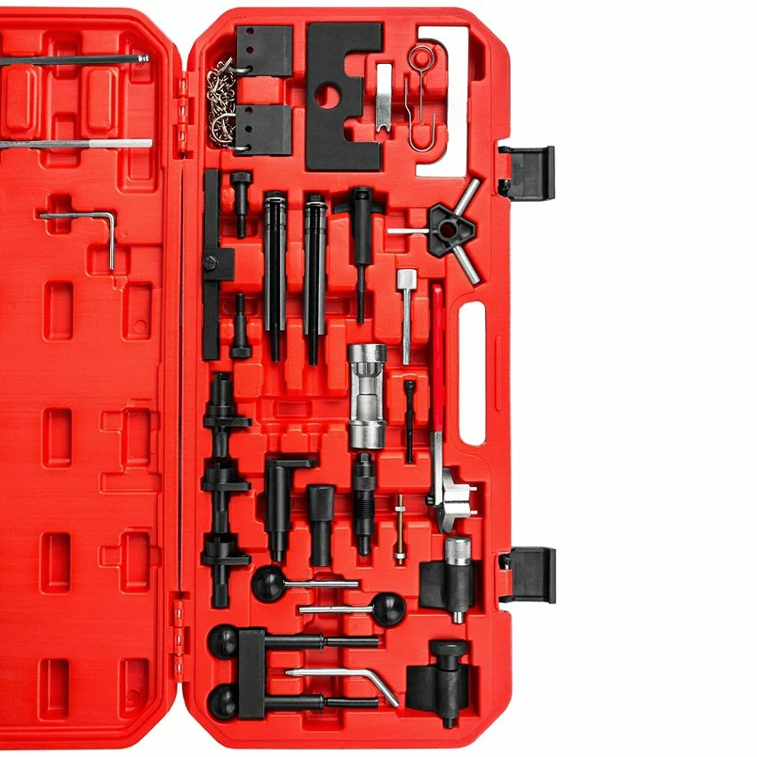 Set d’Outils de Calage de Distribution Moteur 34 pièces Audi Seat Skoda Volkswagen TECTAKE • Le Set de Calage de Distribution Moteur TECTAKE est idéal pour le contrôle et le calage de l’arbre à cames sur les voitures Audi, Seat, Skoda et Volkswagen. • Ce produit est compatible avec de nombreux modèles (Voir Liste ci-dessous). • Ce kit d’outils de calage, de distribution moteur, de verrouillage, séduira les passionnés de mécanique.