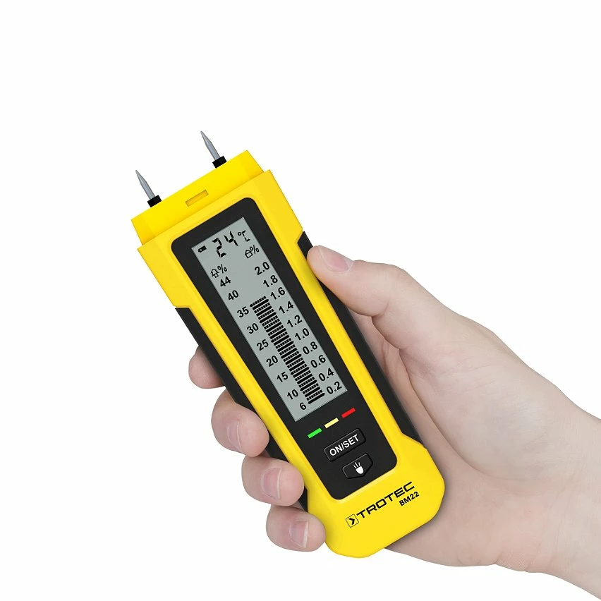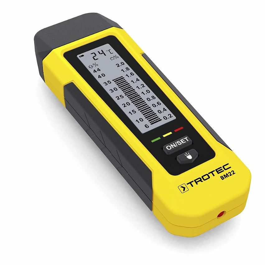 Le BM22 est un testeur d’humidité pour bois et matériaux tendres à fonction de thermomètre (affichage des résultats en °C ou °F). Cet humidimètre est en outre doté d’une lampe qui permet de réaliser aisément des mesures même lorsque la visibilité est réduite.