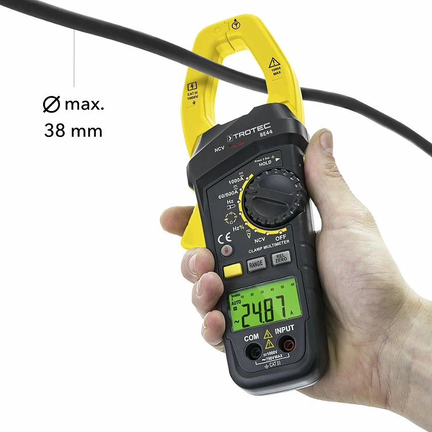Mesure les courants alternatifs et continus de 1000 A max. ainsi que la tension alternative jusqu’à 1000 volts.