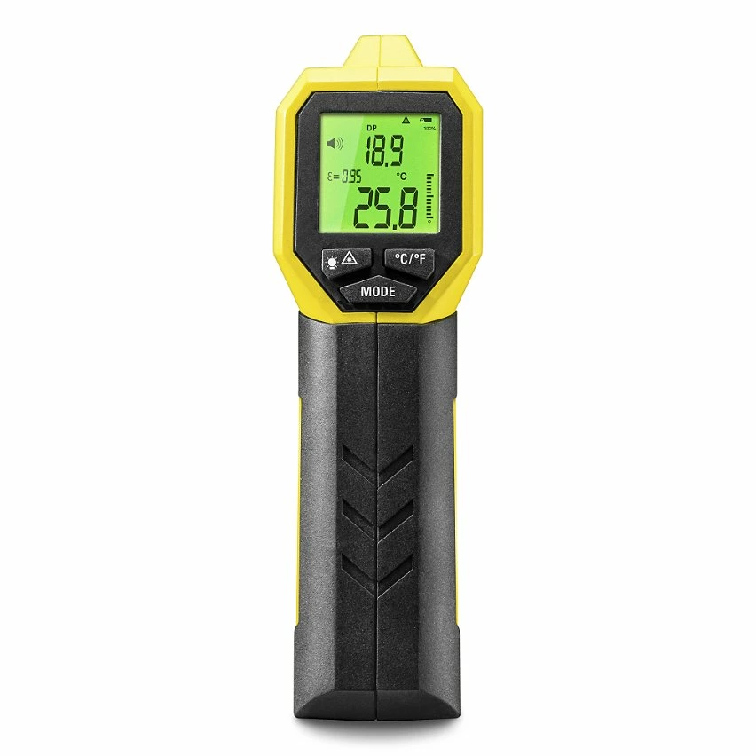 Le calcul du point de rosée permet de détecter les ponts thermiques, c’est-à-dire les zones d’un bâtiment présentant une différence de température de surface différente de la zone alentour. Utilisable par les professionnels comme les particuliers, le détecteur de pont thermique BP25 vous permettra de contrôler si des surfaces telles que murs intérieurs ou façades comportent des zones froides, là où de la condensation et des moisissures risquent d’apparaître. Ce pyromètre mesure la température de surface sans contact par infrarouge et calcule automatiquement le point de rosée. L’écran rétro-éclairé permet de lire aisément les résultats. Le viseur à double laser de l’appareil vous permettra de visualiser la zone que vous mesurez.