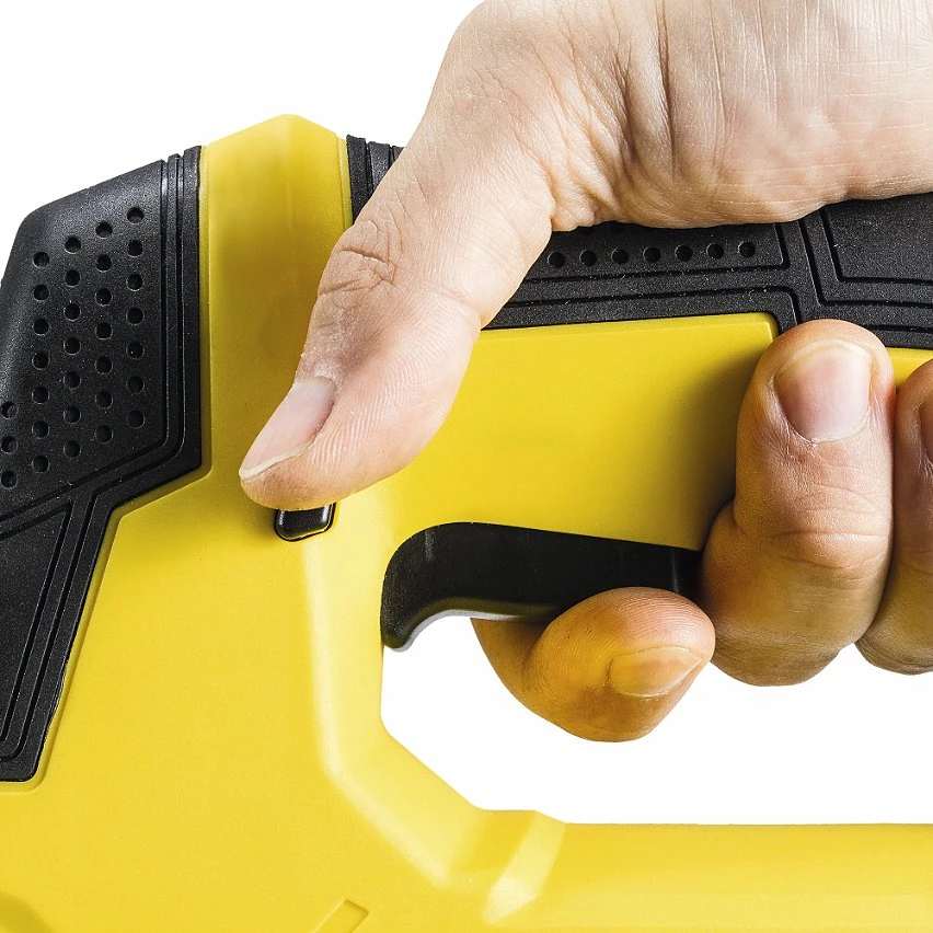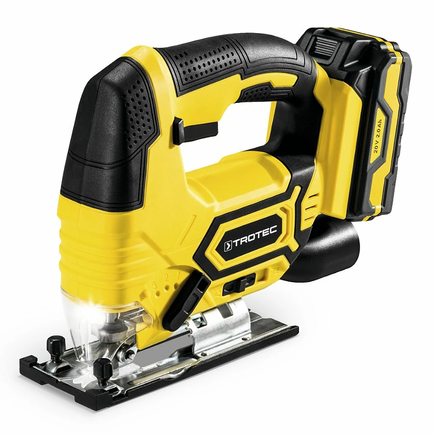 Son puissant moteur à régime max. de 2700 courses par minute est alimenté par une batterie lithium-ion de 20 V. Batterie sans effet mémoire ni perte de charge. Ceci permet d’utiliser la scie à tout moment en bénéficiant constamment d’une puissance maximale. Le niveau de charge est indiqué par des diodes de couleur ; le temps de charge est d’1 heure seulement.