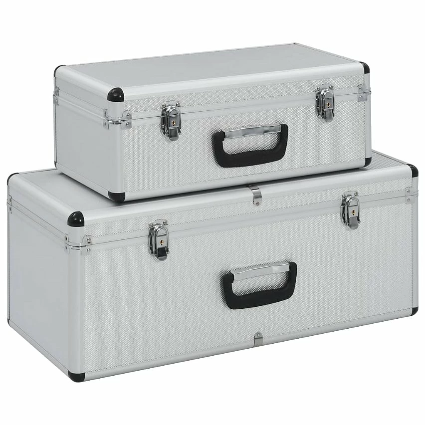 Notre ensemble portable de 2 boîtes de rangement est la solution idéale pour stocker et transporter vos outils, votre équipement professionnel ou vos objets personnels. Emballez simplement tout ce dont vous avez besoin dans cet ensemble de coffres de transport pratiques et emportez-le !