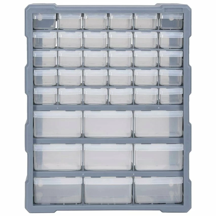 Ce meuble de rangement contient 30 petits tiroirs et 9 tiroirs de taille moyenne pour répondre à vos différents besoins. Il garde vos outils à main et accessoires comme les fixations organisés et à portée de main. L’armoire à outils est fabriquée en plastique résistant aux chocs, qui est à la fois durable et stable. Les tiroirs sont en plastique transparent afin que vous puissiez identifier rapidement le contenu. Cette boîte de bricolage est idéale pour ranger les écrous, les boulons, les vis, les clous, les fixations générales et les composants.
