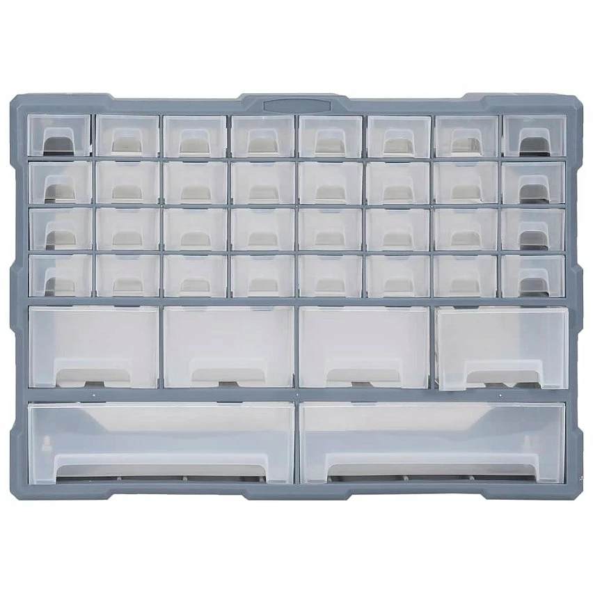 Ce meuble de rangement contient 34 petits tiroirs, 4 tiroirs de taille moyenne et 2 grands tiroirs pour répondre à vos différents besoins. Il garde vos outils à main et accessoires comme les fixations organisés et à portée de main. L’armoire à outils est fabriquée en plastique résistant aux chocs, qui est à la fois durable et stable. Les tiroirs sont en plastique transparent afin que vous puissiez identifier rapidement le contenu. Cette boîte de bricolage est idéale pour ranger les écrous, les boulons, les vis, les clous, les fixations générales et les composants.