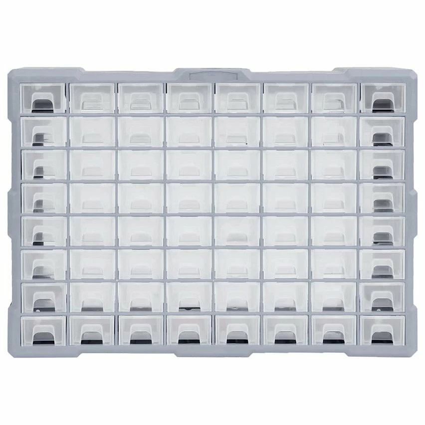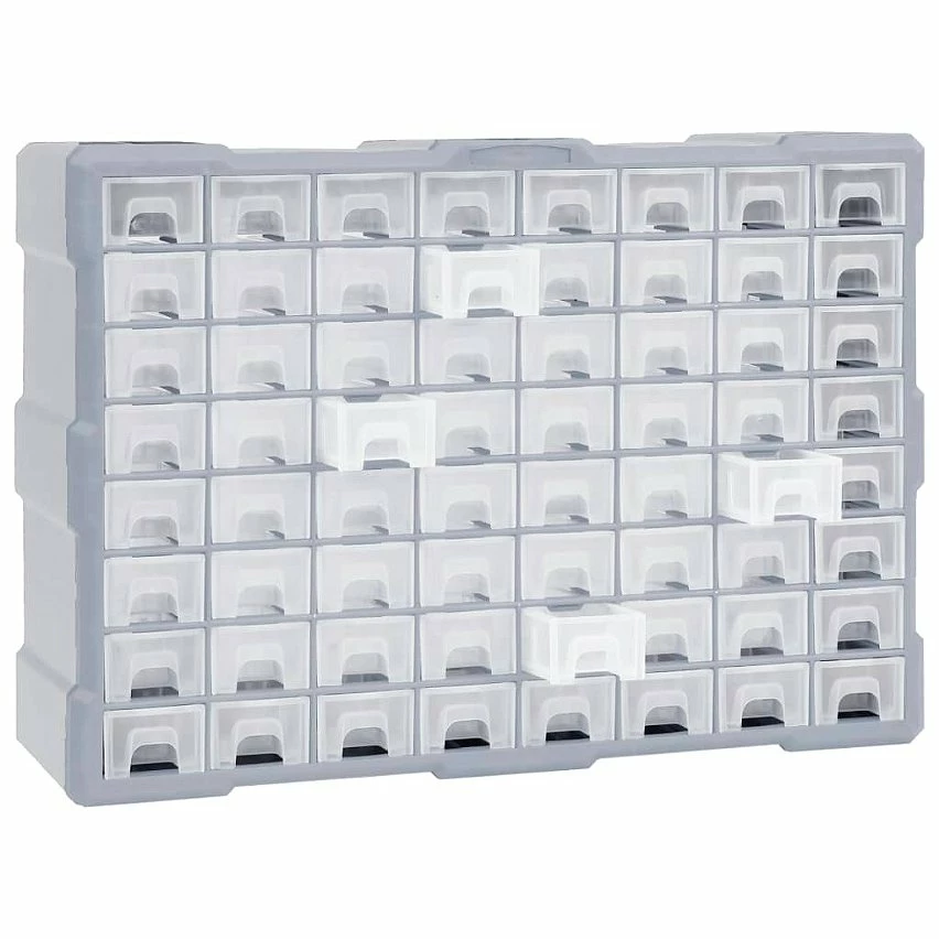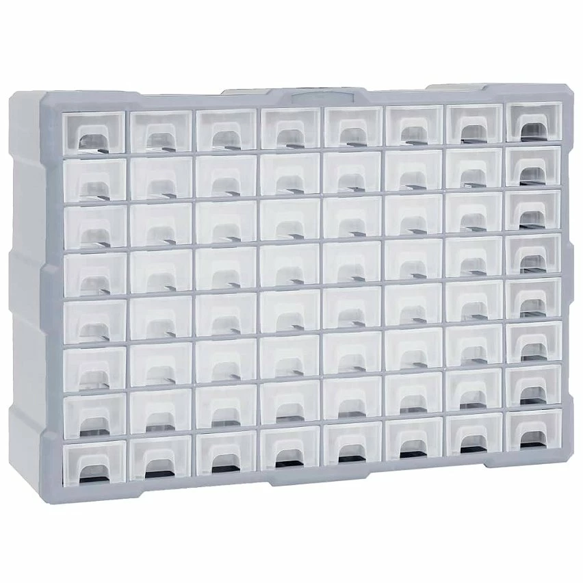 Ce meuble de rangement contient 64 petits tiroirs, qui garde vos outils à main et accessoires comme les fixations organisés et à portée de main. L’armoire à outils est fabriquée en plastique résistant aux chocs, qui est à la fois durable et stable. Les tiroirs sont en plastique transparent afin que vous puissiez identifier rapidement le contenu. Cette boîte de bricolage est idéale pour ranger les écrous, les boulons, les vis, les clous, les fixations générales et les composants.