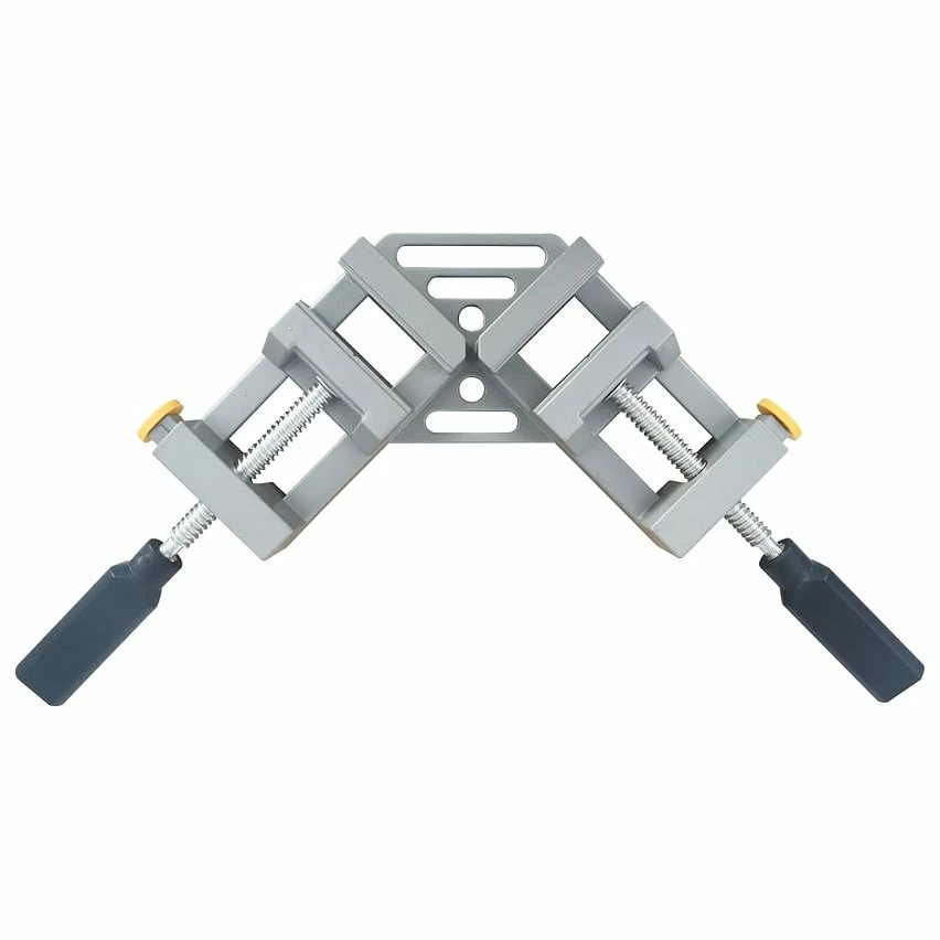 Grâce à sa conception à double manche, l’étau peut contenir une plus large gamme d’objets que les étaux d’angle à manche unique. Il permet un traitement plus flexible, par exemple en connectant 2 blocs de bois d’épaisseur différente à 90 degrés. Les mâchoires trempées garantissent un maintien garanti à chaque opération d’usinage. Cette pince d’angle droit sera utile lorsque la pièce a un angle de 90 degrés ; et la broche pivotante et la tête de serrage permettent de serrer fermement et en toute sécurité des matériaux de différentes sections transversales. Cette unité comporte également une base stable, qui peut être facilement montée sur votre établi.