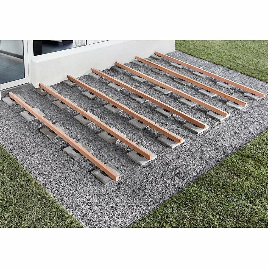 Cela aide à protéger les solives et les panneaux de terrasse de l’humidité et empêche ainsi le bois de pourrir prématurément.