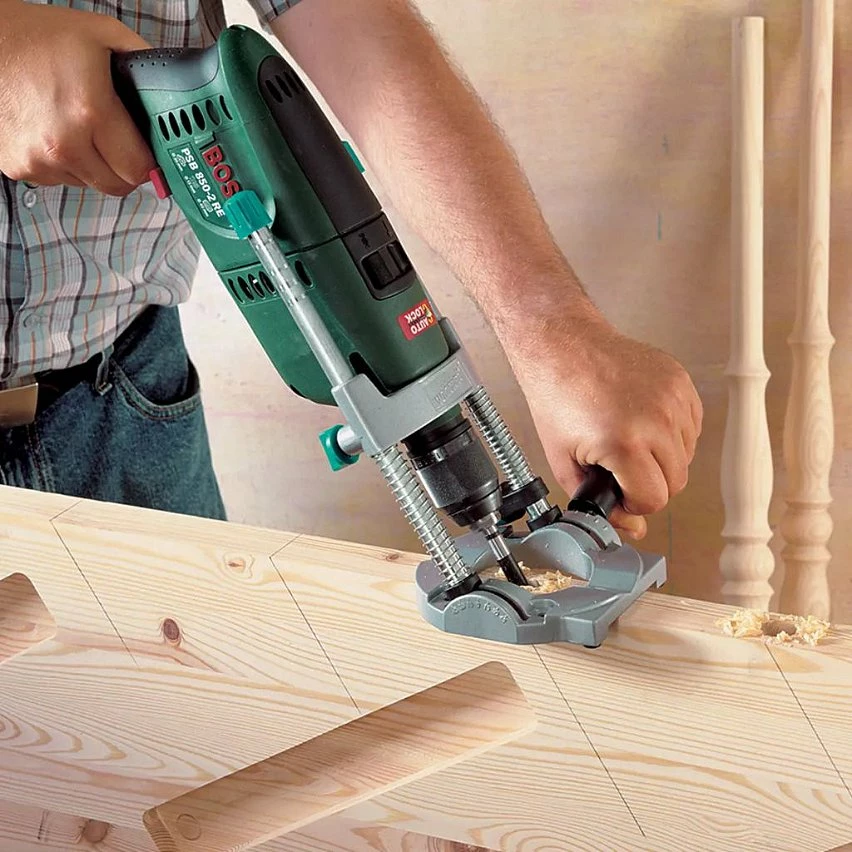- Poignée supplémentaire pour un positionnement précis et contre le dérapage lors du perçage
